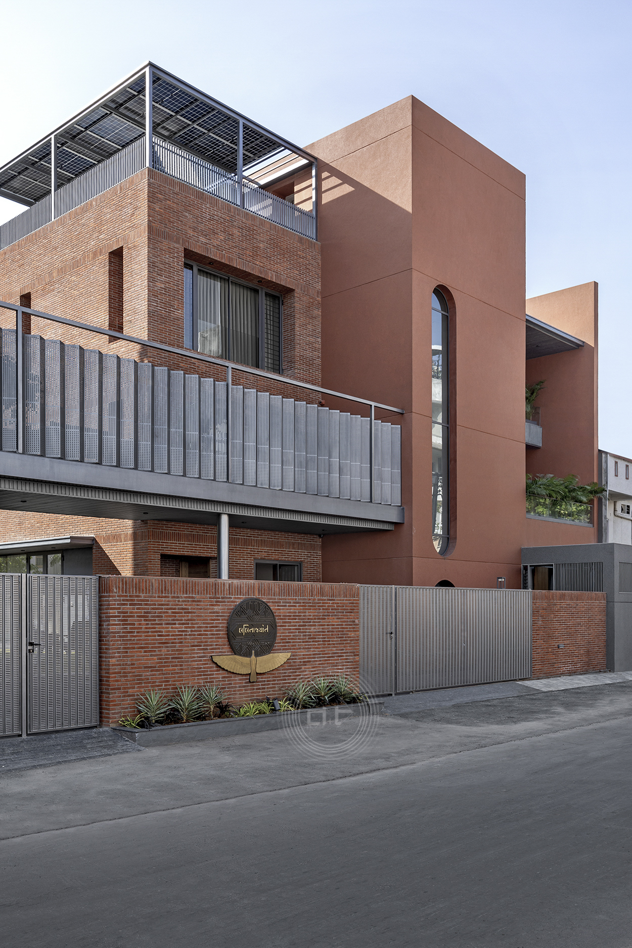 A celebration of symmetry and contrast, this pair of bungalows balances raw textures with refined geometry. The material palette speaks in quiet confidence—exposed brickwork, corten-inspired plaster, and perforated metal screens come together like architectural poetry.